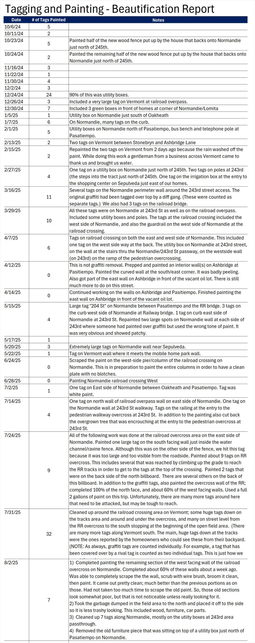 Below is our annual report outlining our efforts throughout the community. See the images below to see how much work is being done to battle graffiti in our neighborhood.
